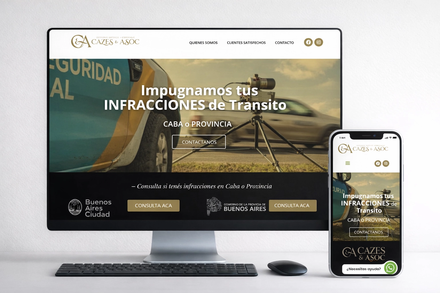 Landing page profesional para estudio jurídico-contable, orientada a generar consultas por infracciones de tránsito en CABA y Provincia. Diseño sobrio que refuerza credibilidad y confianza.