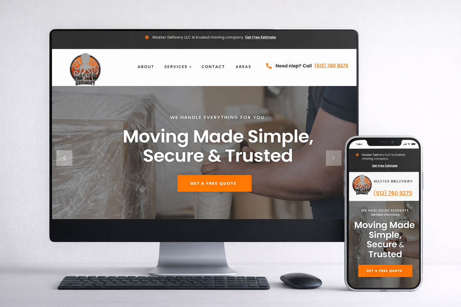 Sitio web corporativo para empresa de mudanzas en Austin, diseñado con foco en la conversión y captación de clientes. Se priorizó claridad en el mensaje y facilidad de contacto.